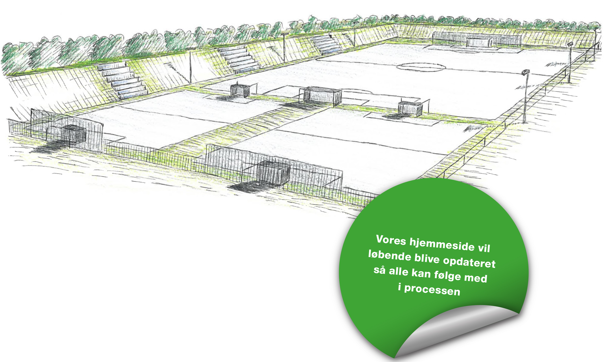 Vi har pt. en stor del af finansieringen på plads til at etablere vores ønskeprojekt, hvilket er en 11-mands bane (med to 8-mands baner på tværs) samt to 5-mandsbaner. Se skitse på forside.